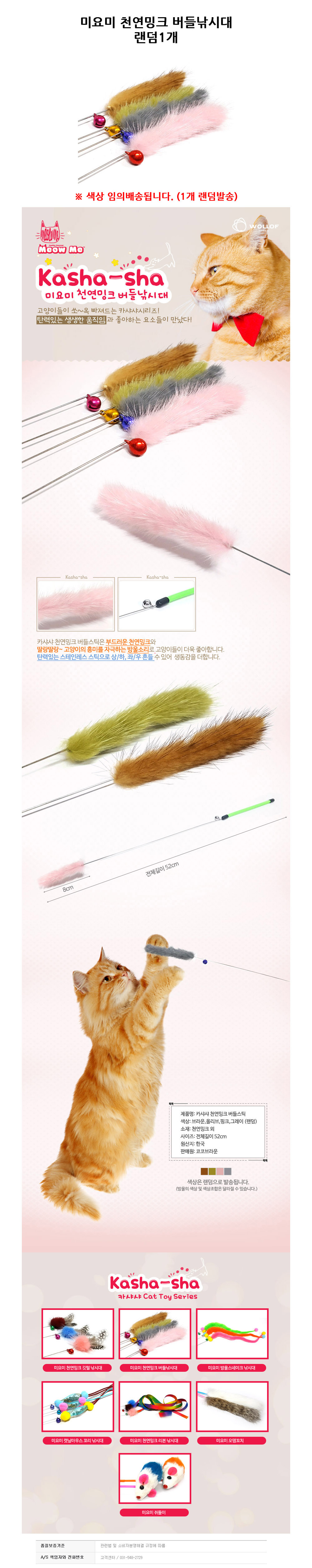 미요미 천연밍크 버들낚시대 고양이 장난감 랜덤1개