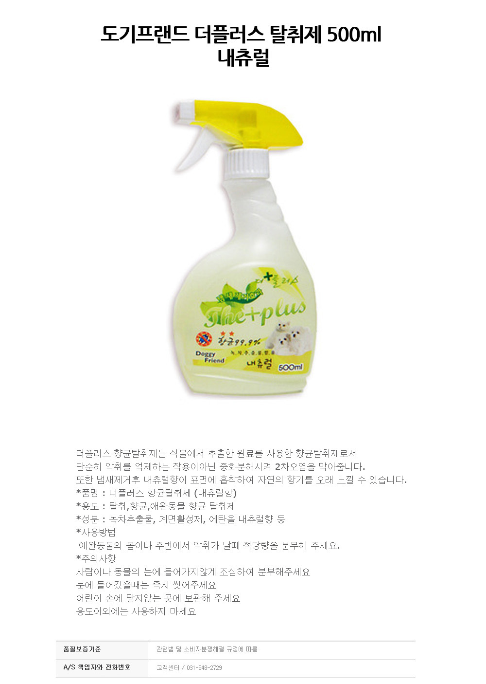 도기프랜드 더플러스 탈취제 500ml 내츄럴 강아지 탈취제