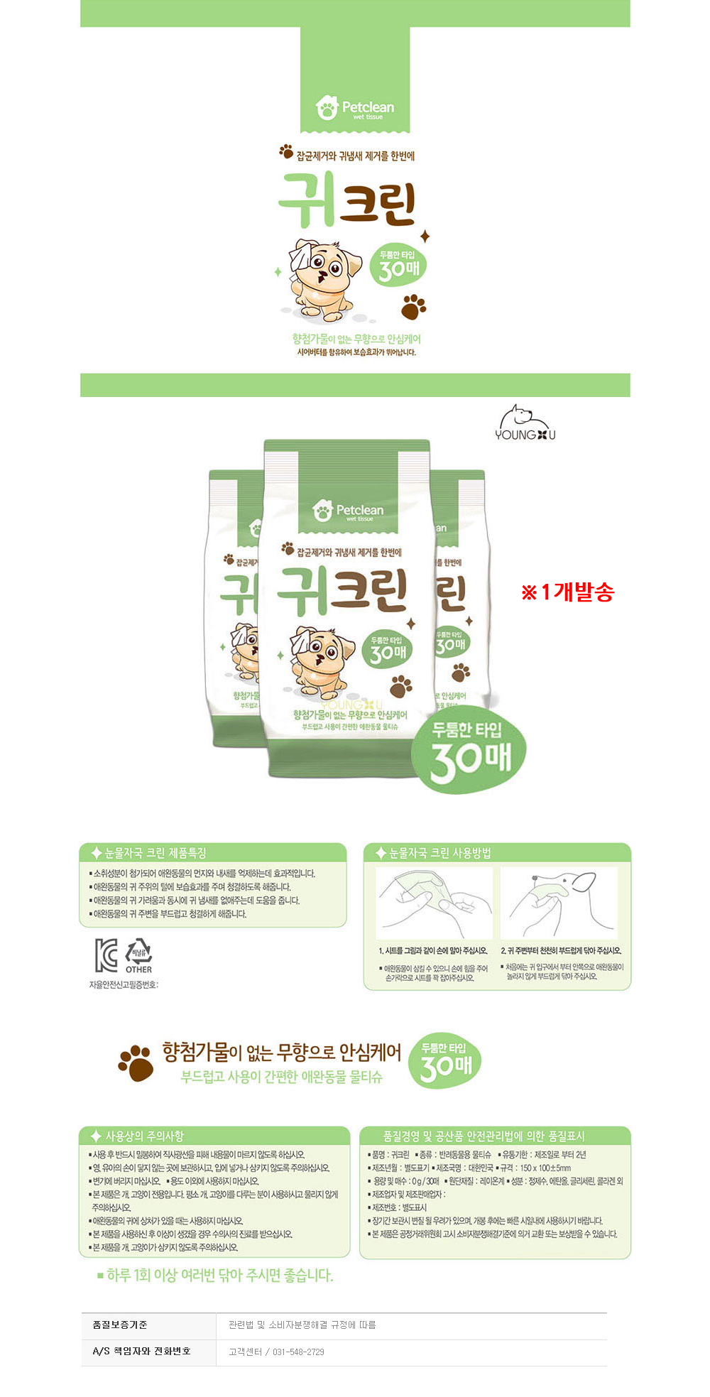 펫크린 눈귀 크린 물티슈 30매 강아지 물티슈