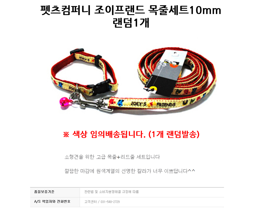 펫츠컴퍼니 조이프랜드 목줄세트10mm 강아지 목줄 랜덤1개