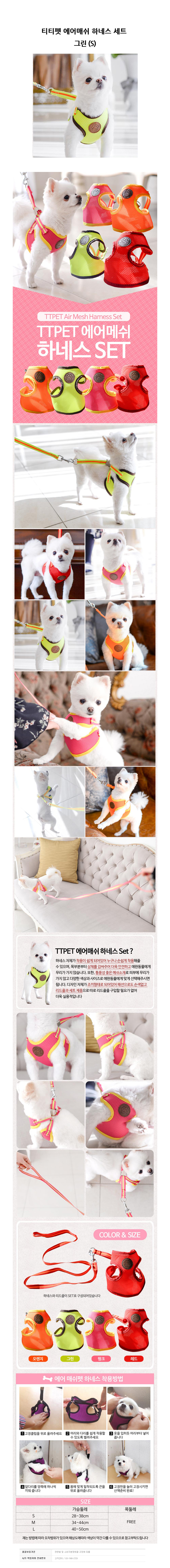 티티펫 에어매쉬 하네스 세트 그린 S 강아지 하네스