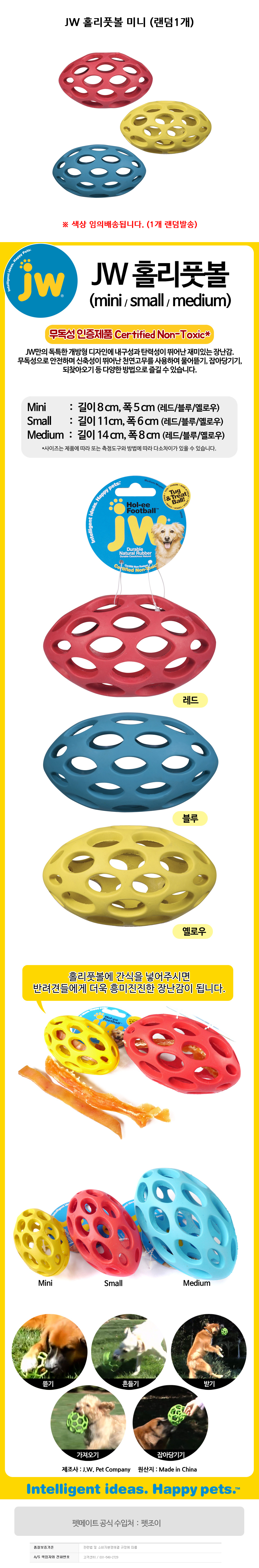 JW 홀리풋볼 미니 강아지 장난감 랜덤1개