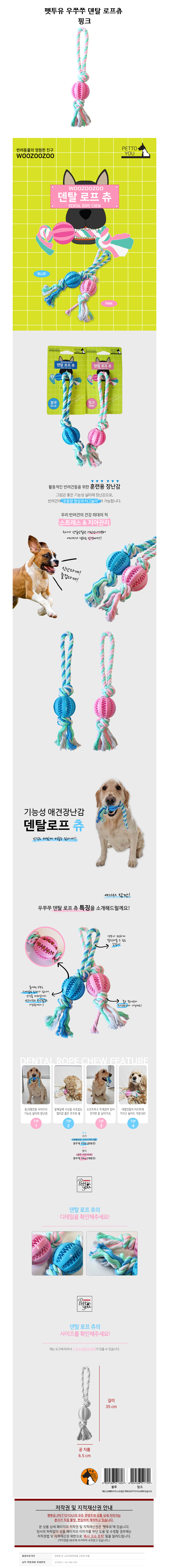 펫투유 우쭈쭈 덴탈 로프츄 핑크 강아지 장난감