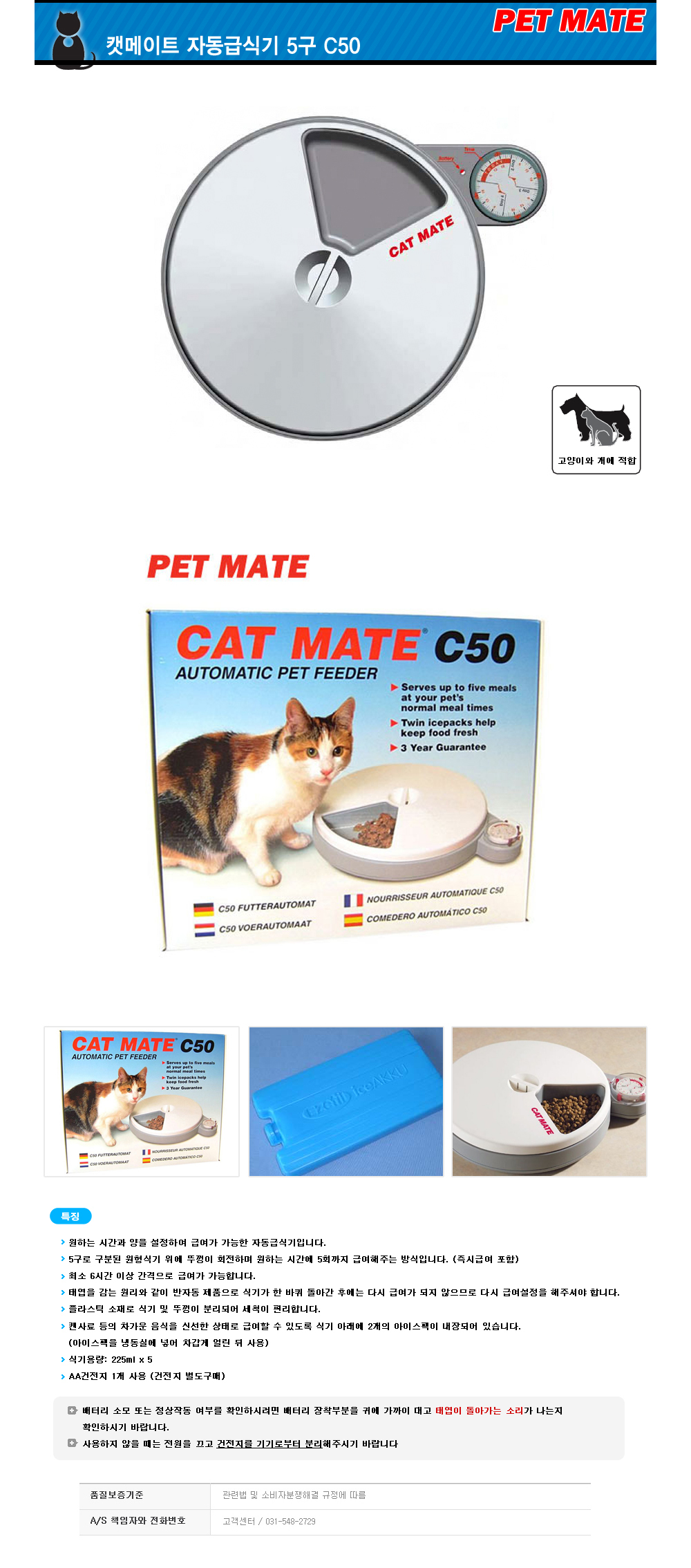 펫메이트 캣메이트 자동 급식기 5구 애완용 급식기 C50