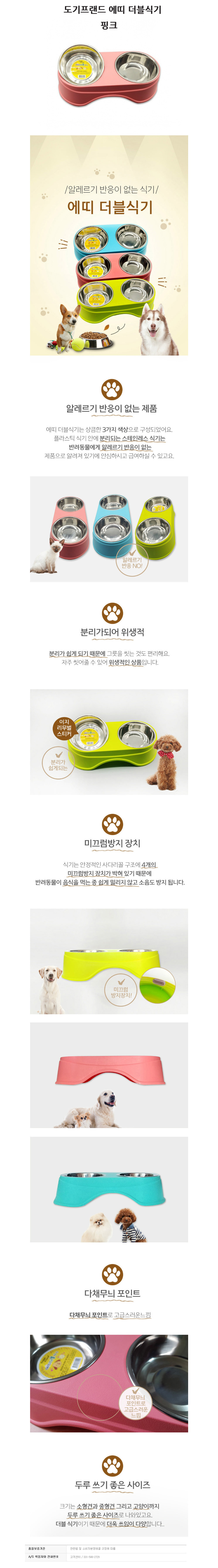 도기프랜드 에띠 더블식기 핑크 애완용 식기