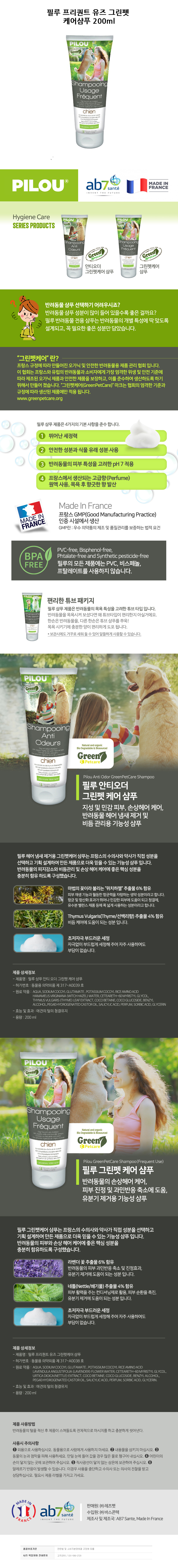 필루 프리퀀트 유즈 그린펫 케어샴푸 200ml 강아지 샴푸