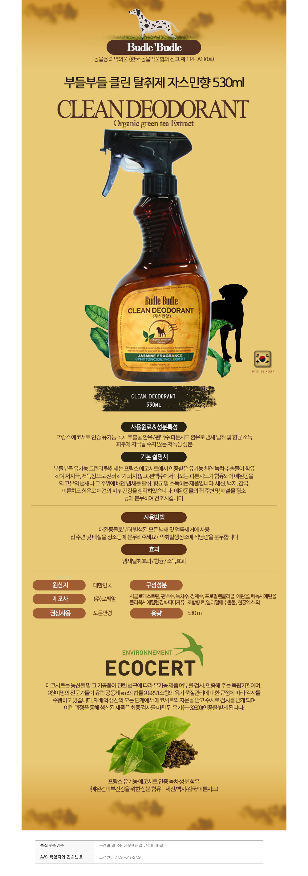 부들부들 클린탈취제 530ml 쟈스민향 강아지 탈취제