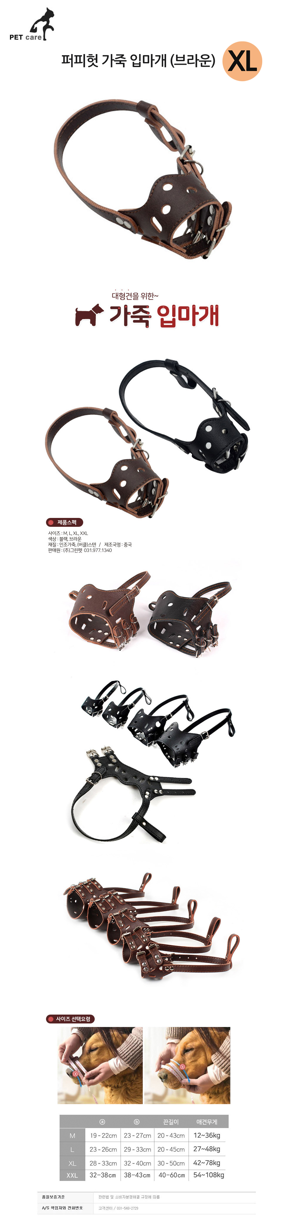 퍼피헛 가죽 애완견 입마개 브라운 XL