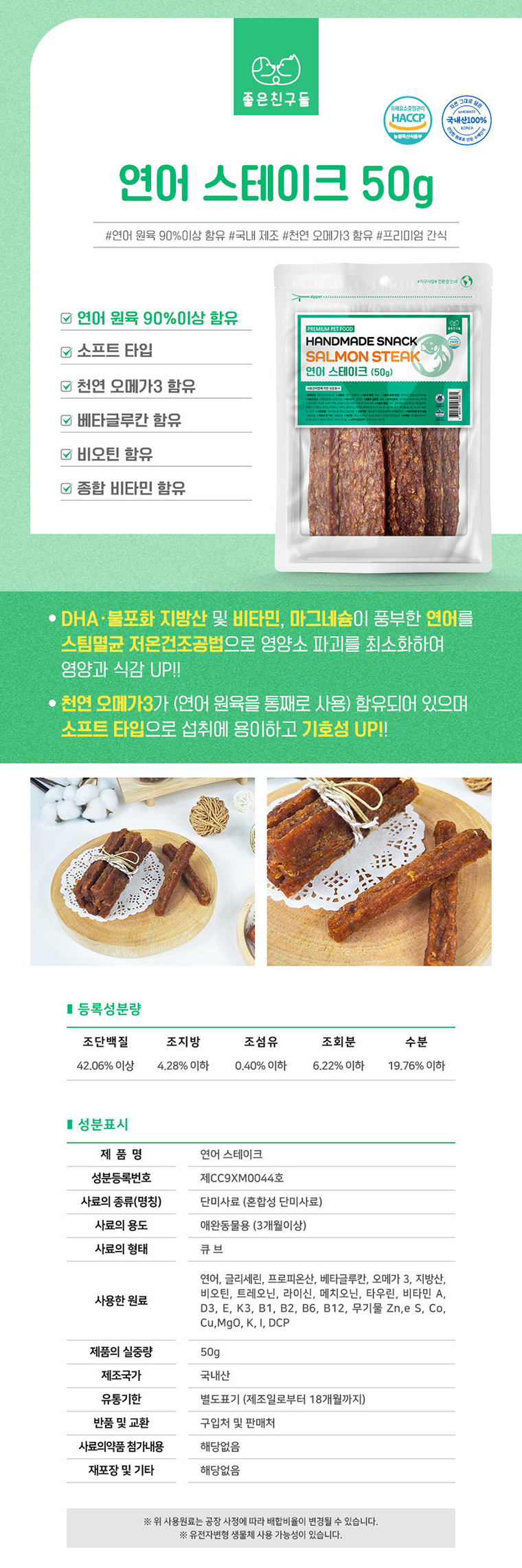 [좋은친구들] 국산 수제간식 스테이크 연어 50g