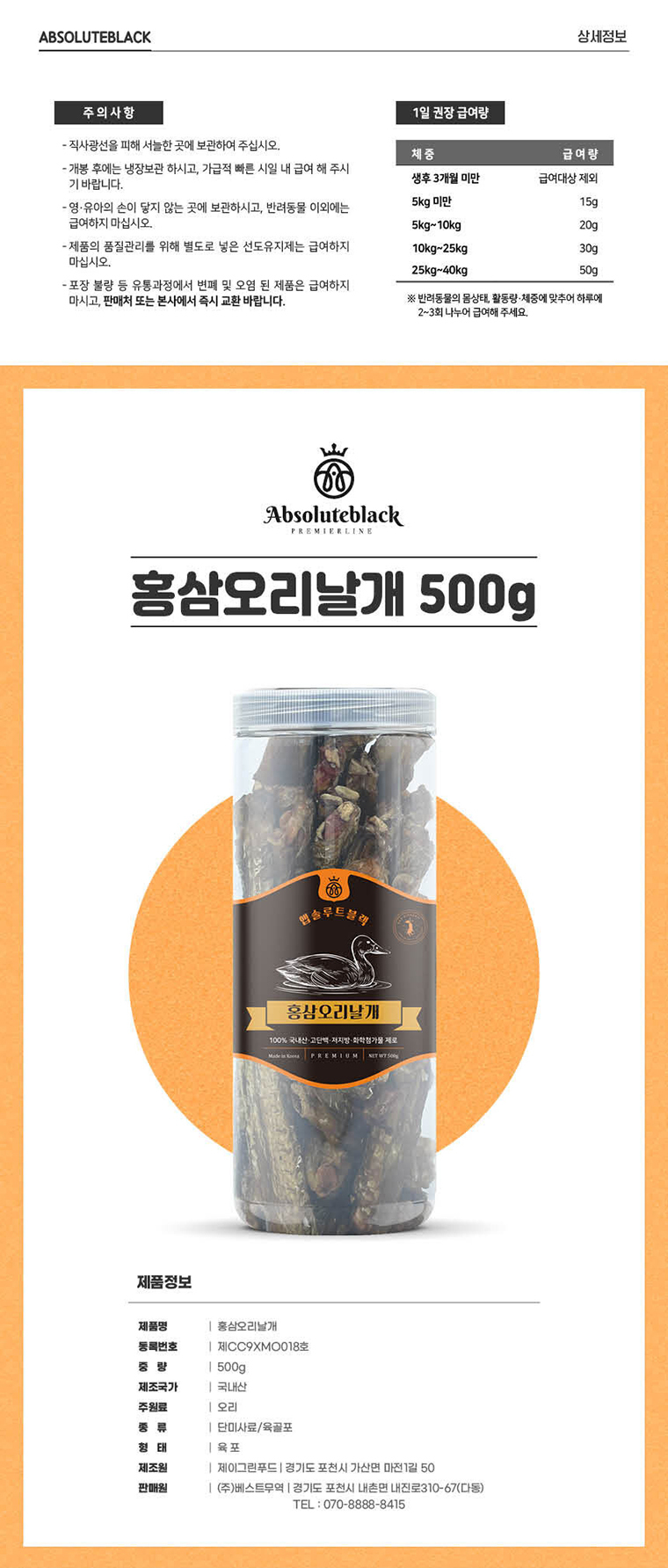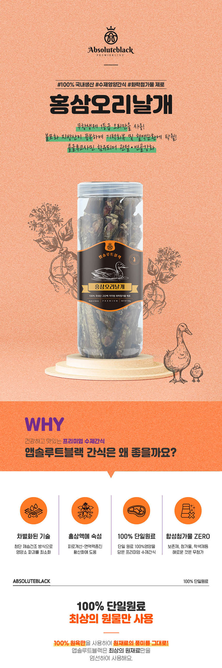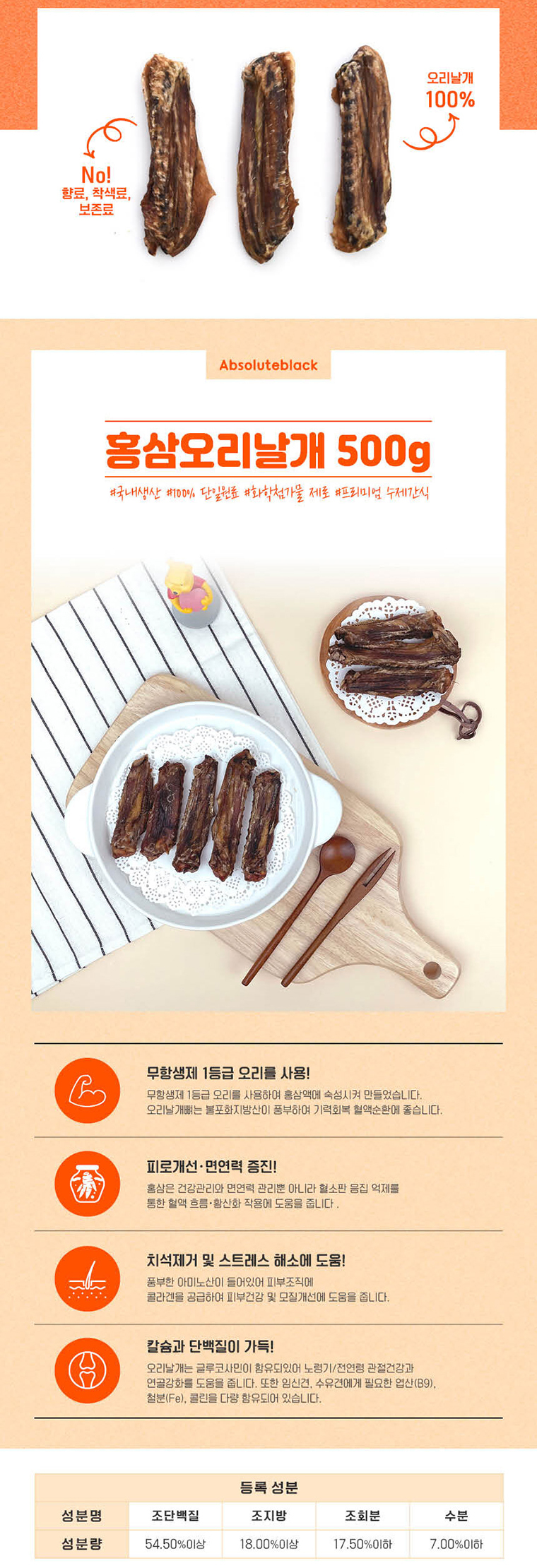 [앱솔루트블랙] 홍삼 오리날개 500g / 국내산