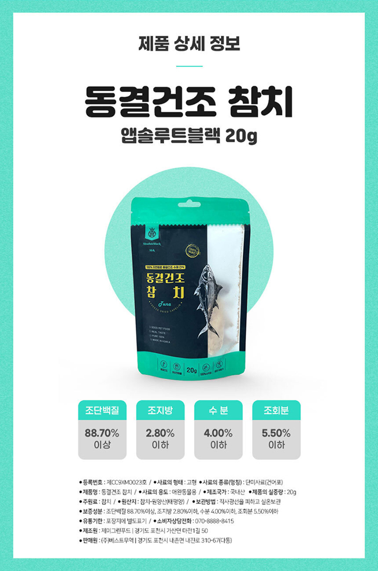 [앱솔루트블랙] 동결건조 참치 20g / 국내산