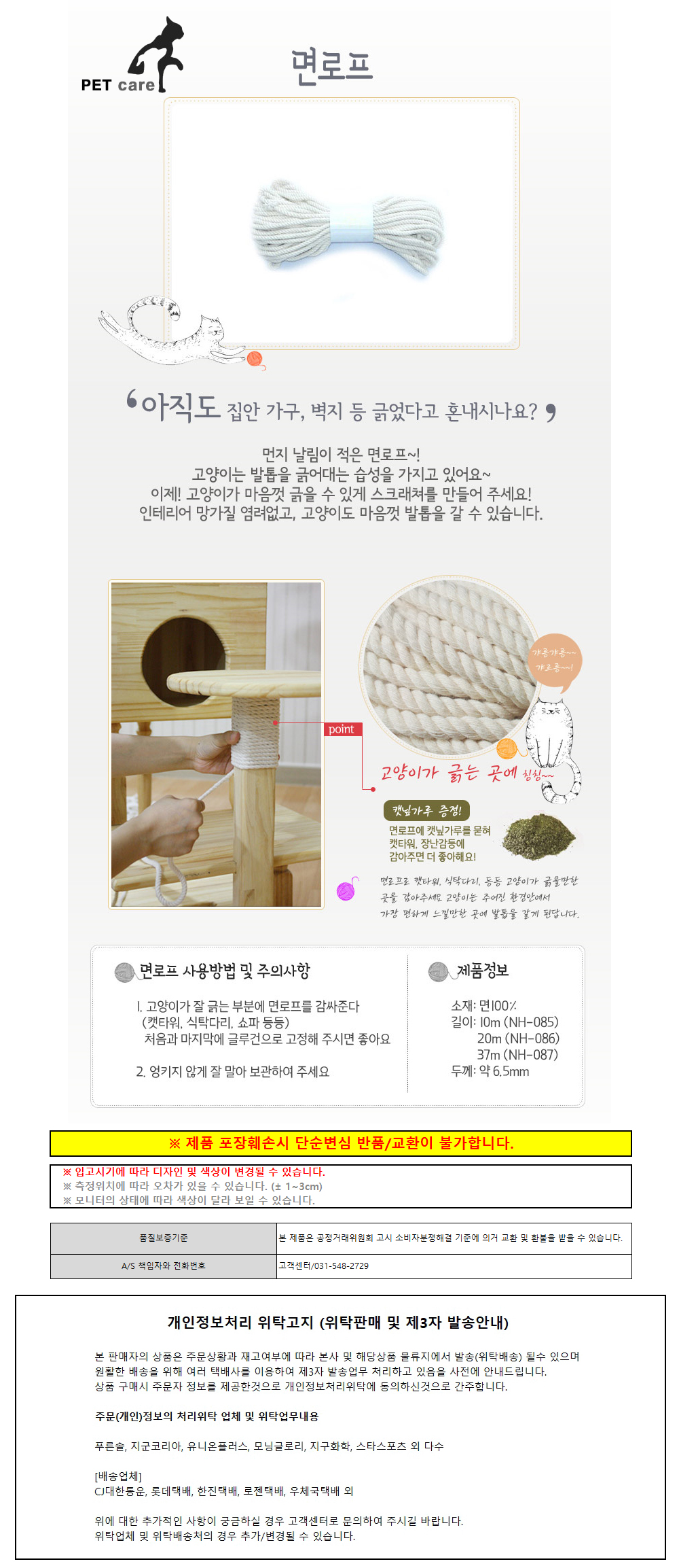힐링타임 고양이 스크래쳐 면줄 (20m)