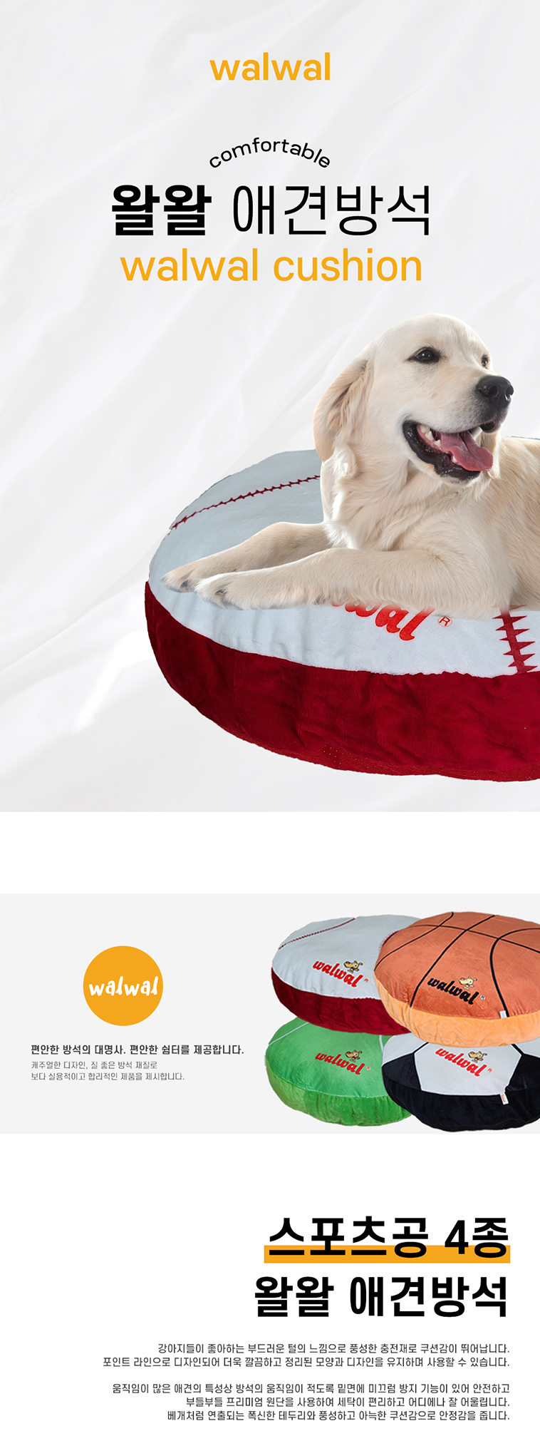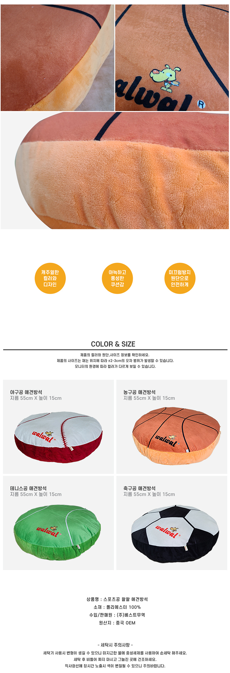 [왈왈] 극세사 스포츠 방석 (농구공)