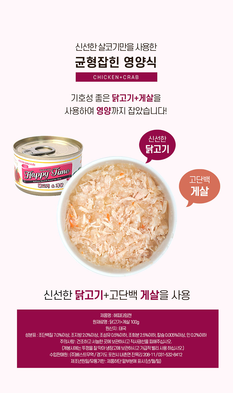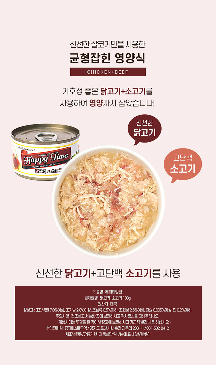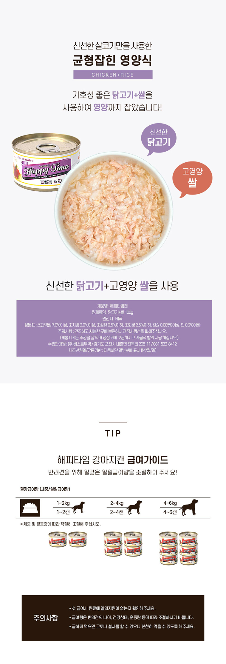 [해피타임] 강아지캔 닭고기와쌀 1박스 (100g 12개입)