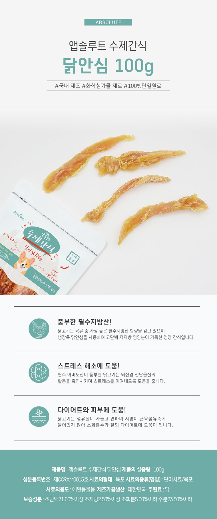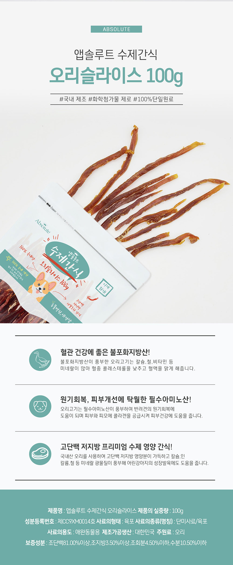 [앱솔루트] 수제간식 오리슬라이스 100g