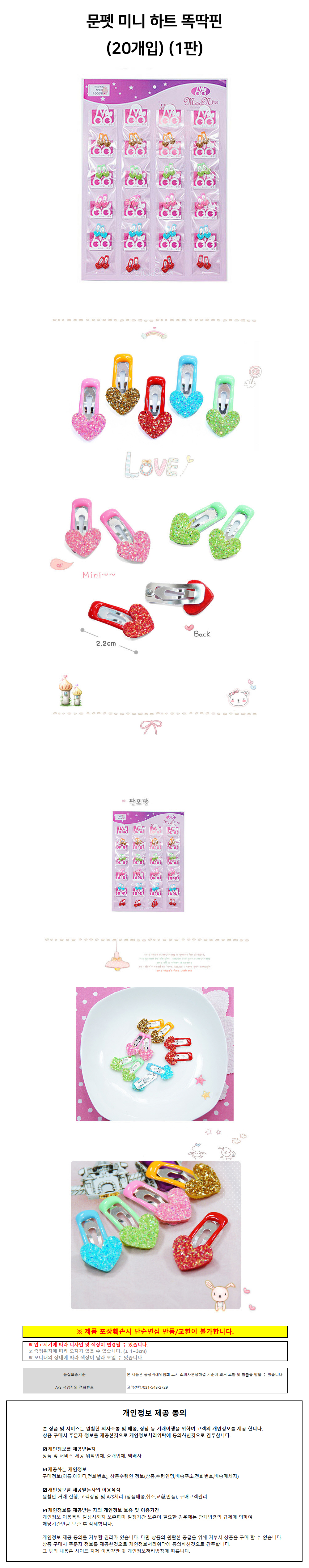 문펫 강아지 미니 하트 똑딱핀 (20개입) (1판)