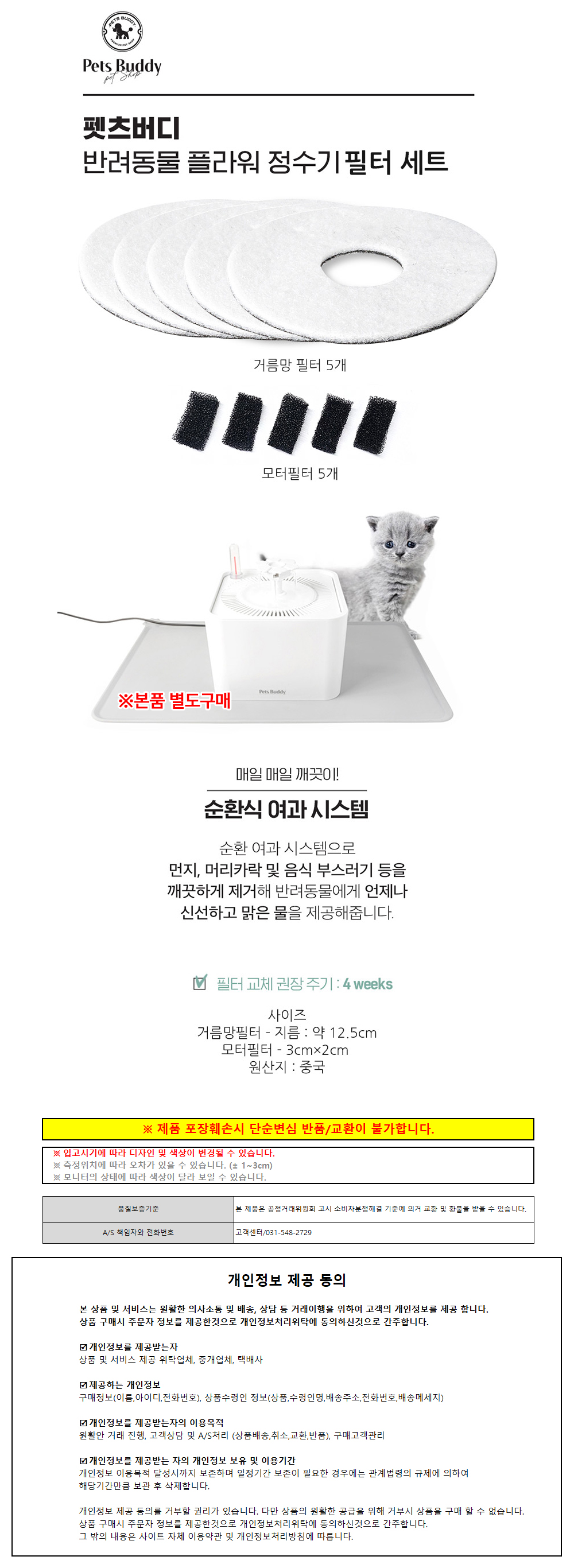 펫츠버디 강아지 플라워 정수기 리필용 필터세트 (거름망필터 5개.모터필터 5개)