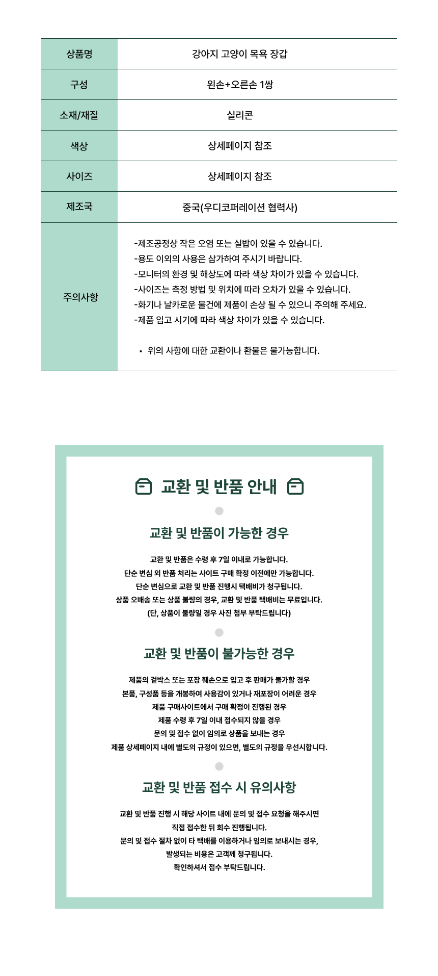 제품하자가 아닌 소비자의 단순변심, 착오구매에 따른 청약철회가 불가능한 경우 그 구체적 사유와 근거 배송ㆍ교환ㆍ반품 상세설명페이지 참고