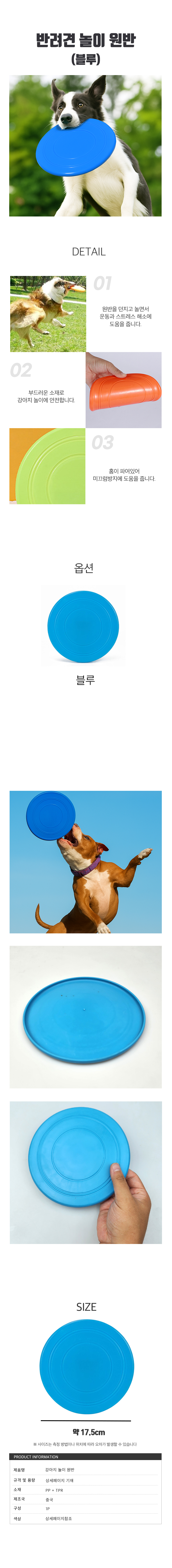강아지 원반 장난감 블루 소형견 반려견 프리스비