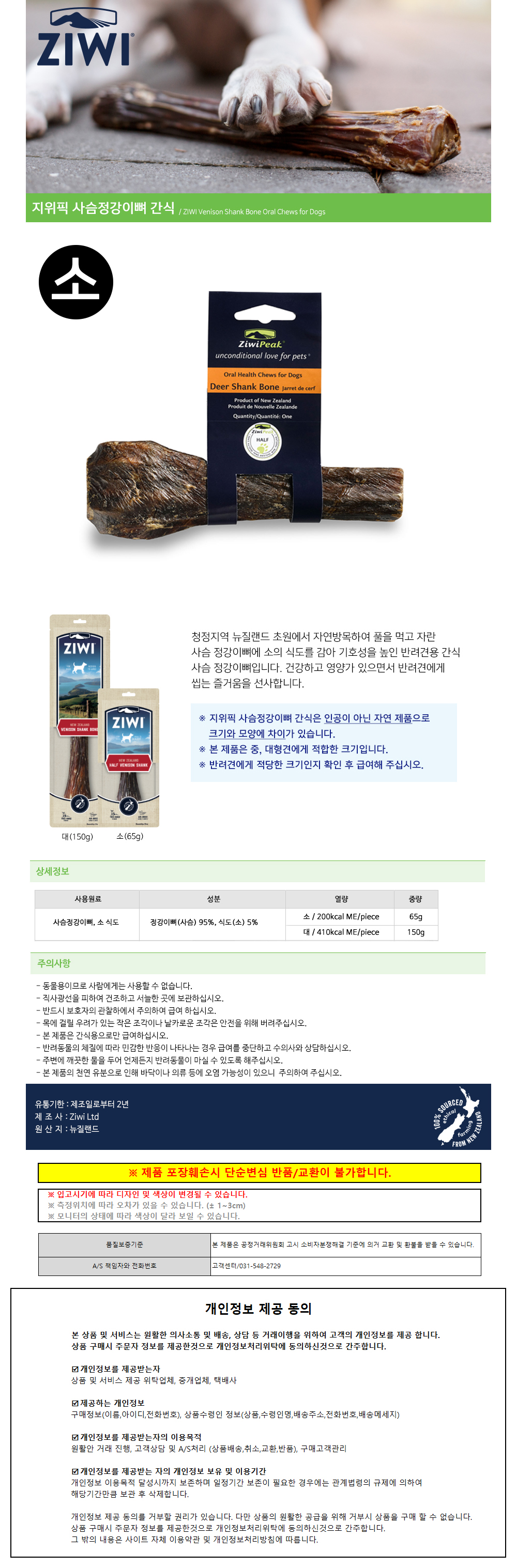 지위픽 강아지 뼈간식 사슴정강이 (소)