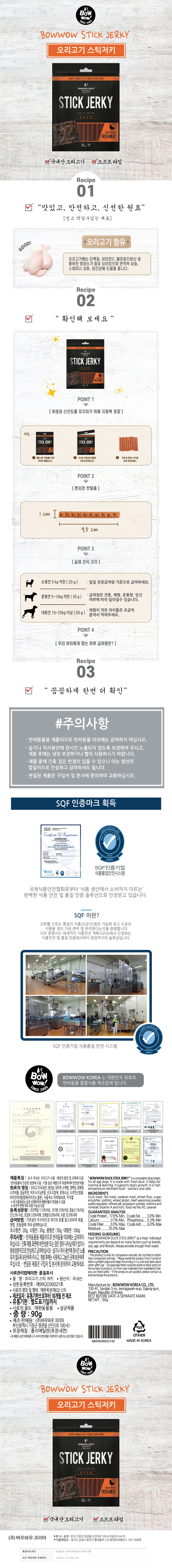 바우와우 오리고기 져키 90g 강아지 간식