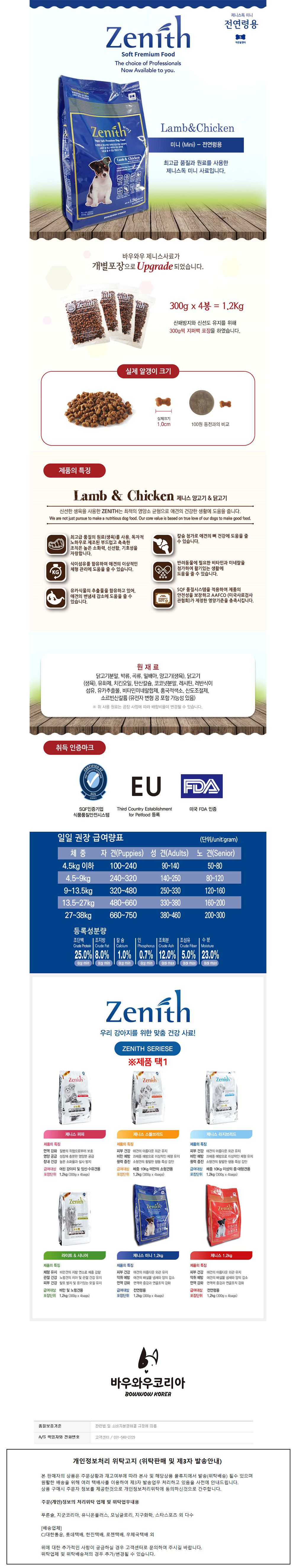 제니스 램앤치킨 1.2kg (작은알) (반습식사료) (블루)