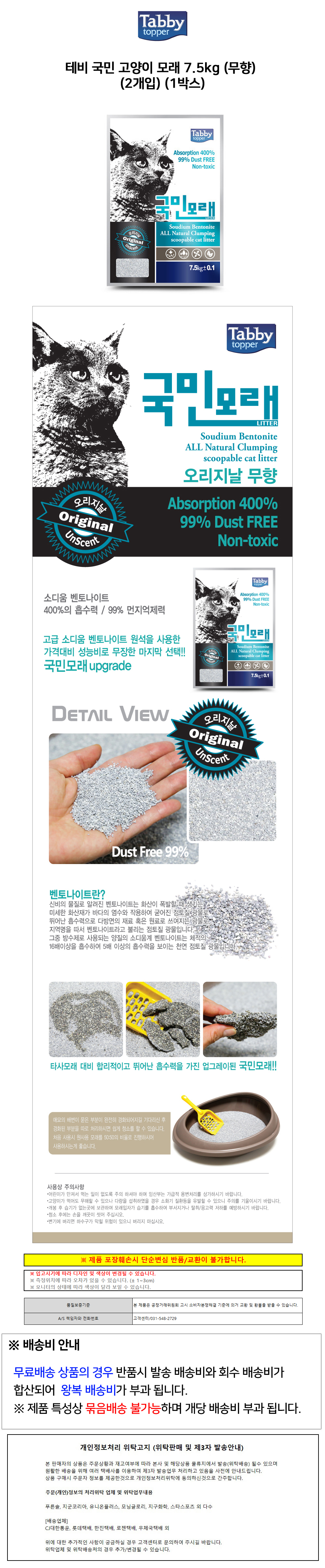 테비 국민 고양이 모래 7.5kg (무향) (2개입) (1박스)