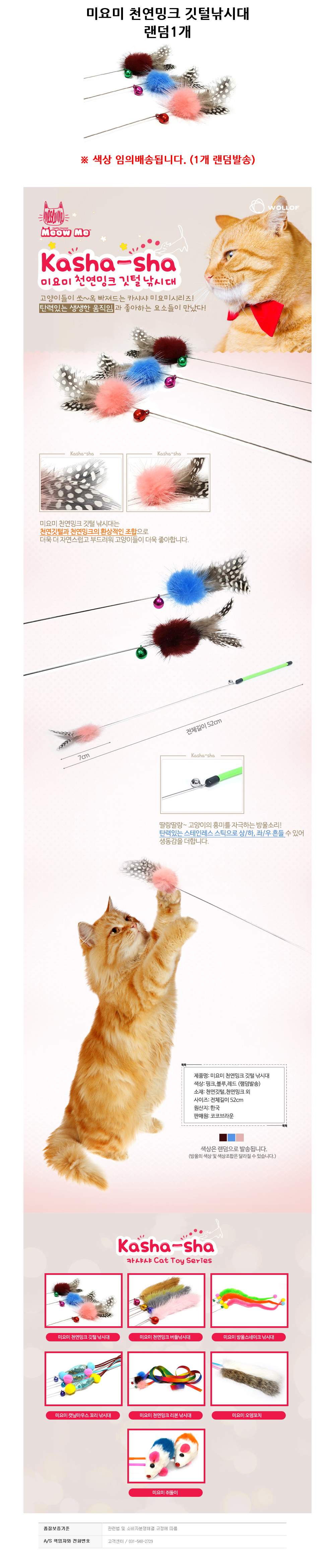 미요미 천연밍크 깃털낚시대 고양이 장난감 랜덤1개