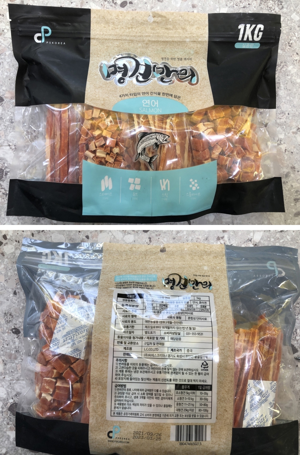 명견만리 대용량 연어 육포 강아지 반려견 사료 1kg