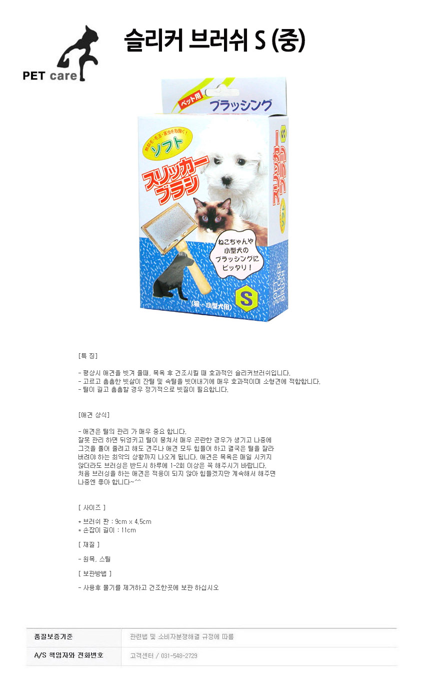펫케어 일본산 슬리커 브러쉬 S 중 애완용품