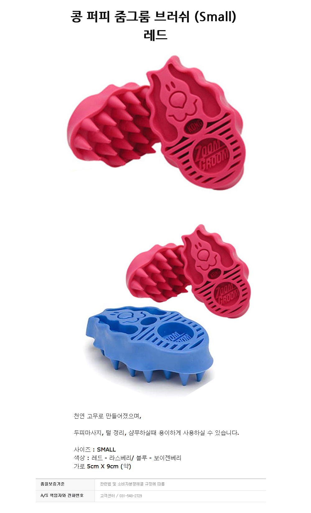 KONG 퍼피 줌그룸 브러쉬 Small 레드 강아지 브러쉬