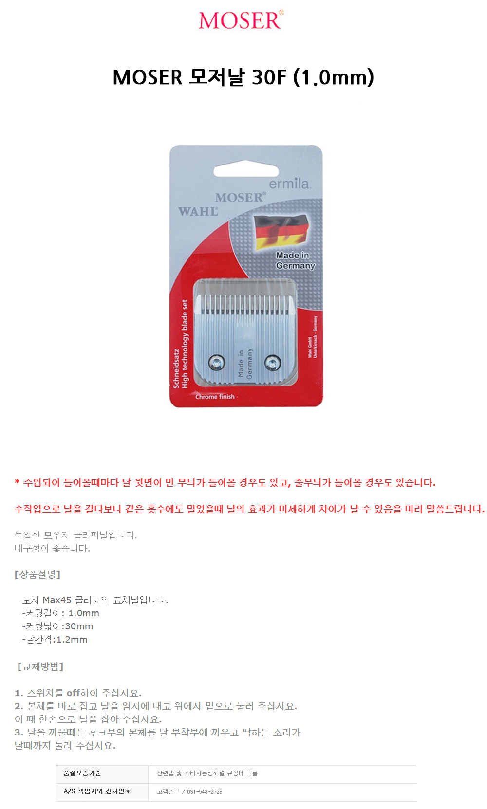 MOSER 모저날 30F 1.0mm 강아지 클리퍼날