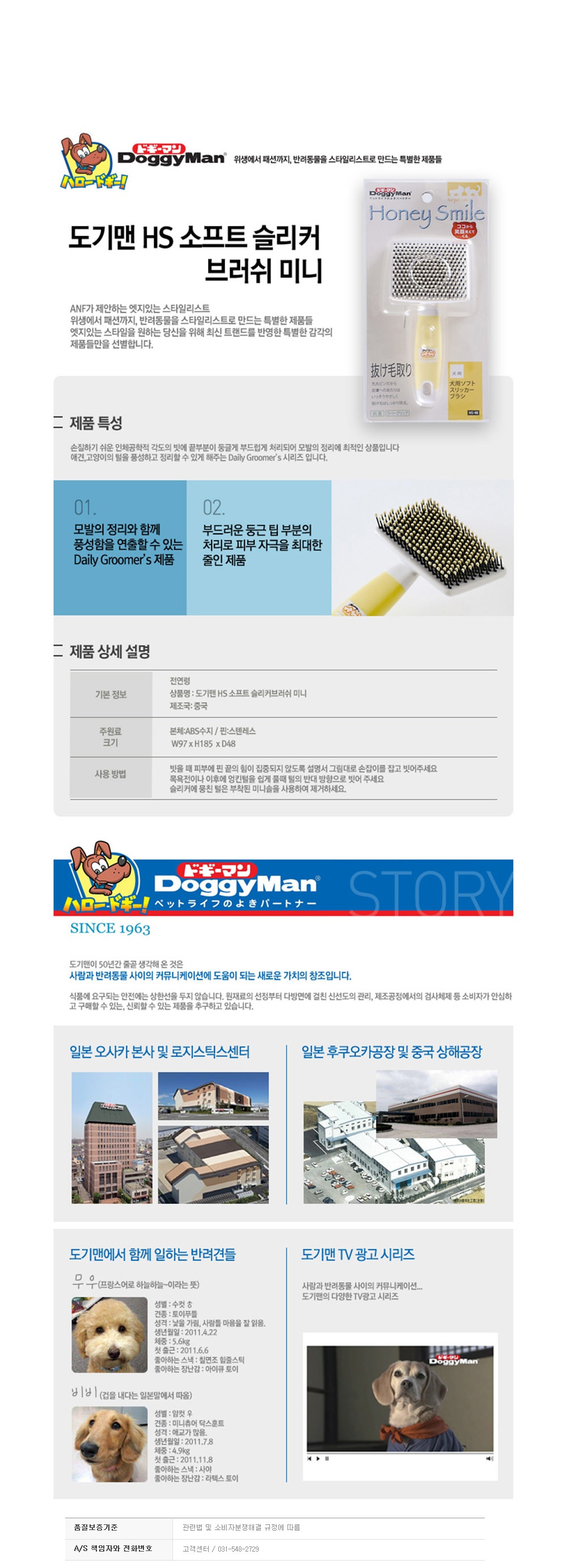 도기맨 허니 스마일 소프트 슬리커 애완용 브러쉬 미니 HS-48