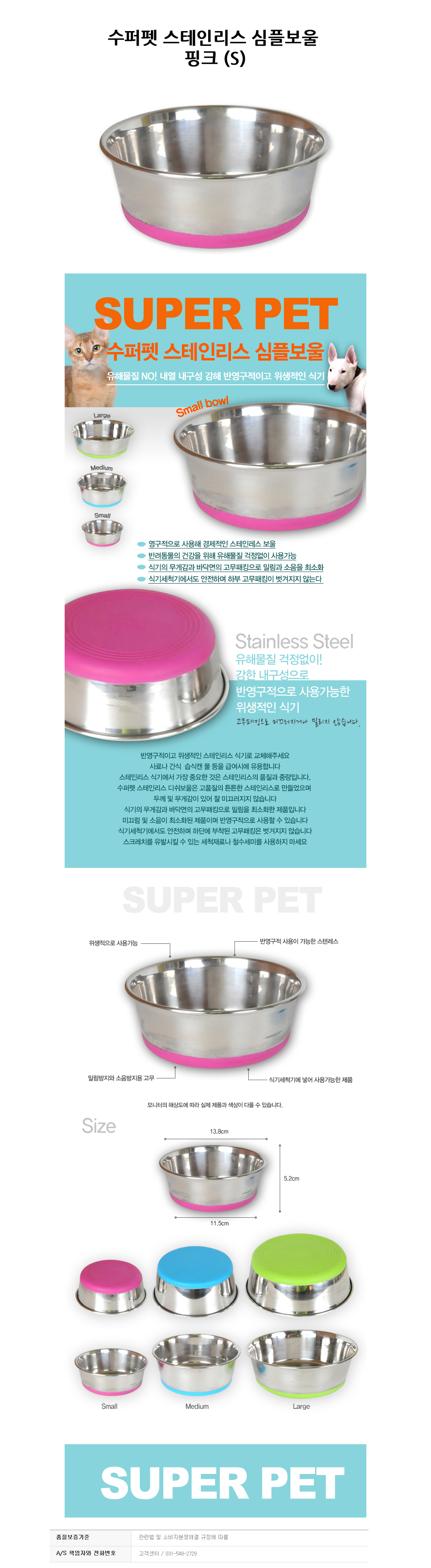 수퍼펫 스테인리스 보울 핑크 S 애완용 식기