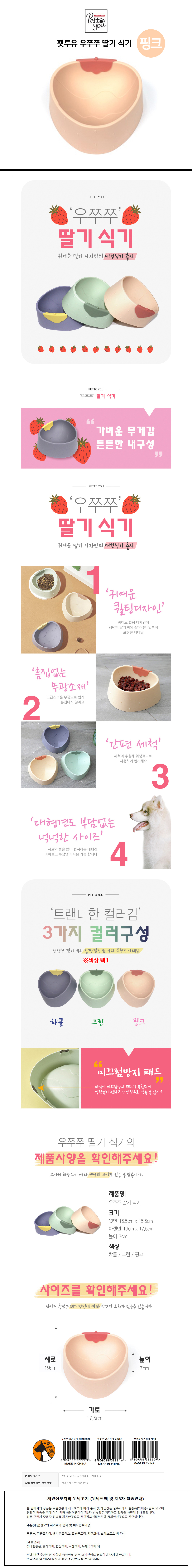 펫투유 우쭈쭈 딸기 강아지용 식기 핑크