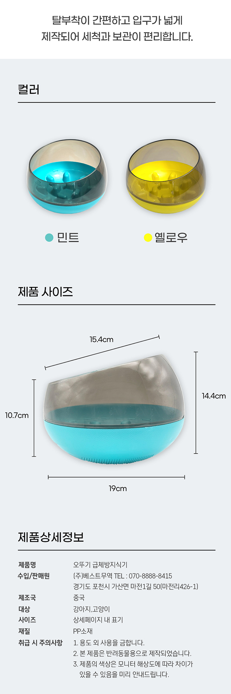 오뚜기 강아지 밥그릇 고양이 급체방지 식기 그릇 슬로우식기