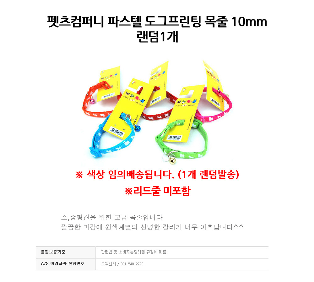 펫츠컴퍼니 파스텔 도그프린팅 강아지 목줄 10mm 리드줄 미포함 랜덤1개