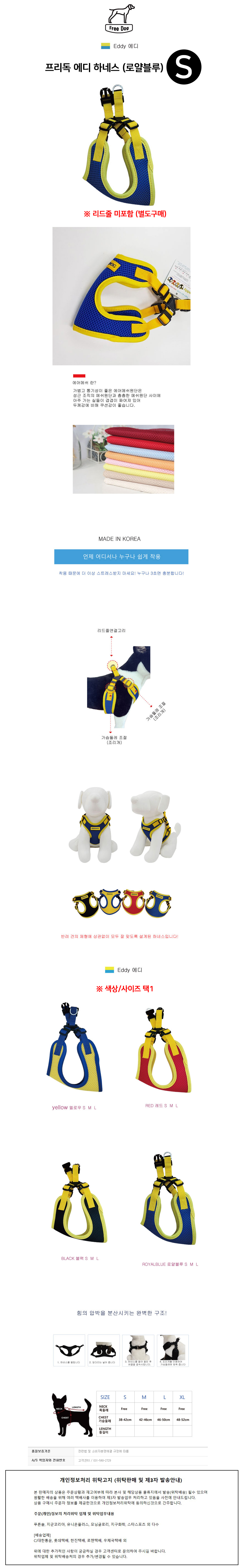 프리독 에디 강아지 하네스 (로얄블루) (S)