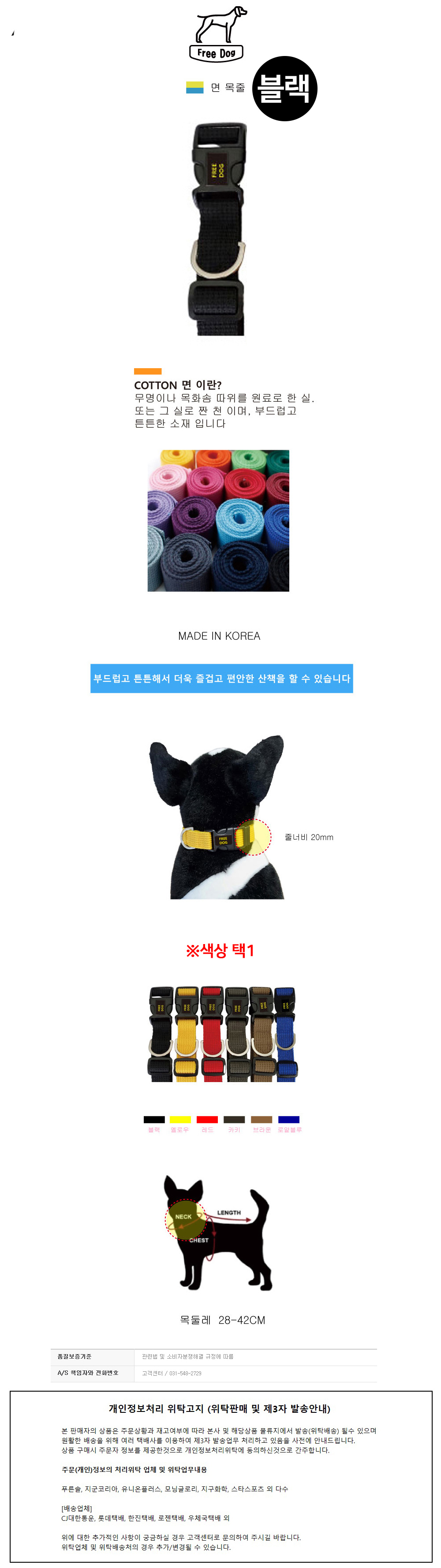 프리독 애견 면 목줄 블랙