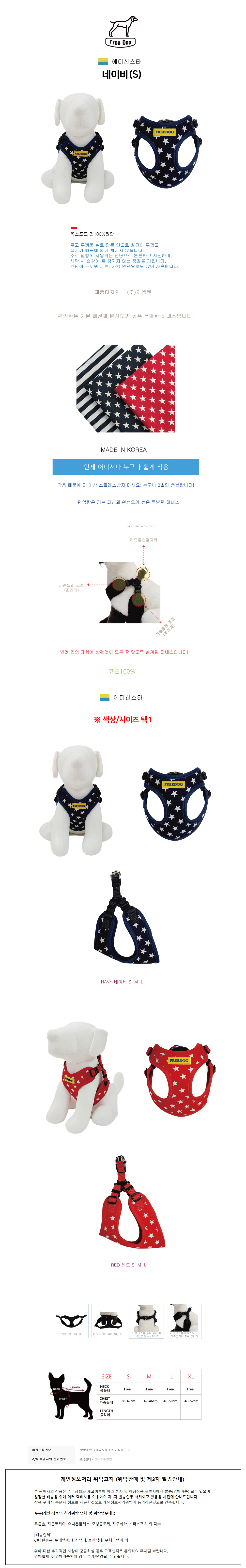 프리독 에디션 스타 강아지 하네스 네이비 S