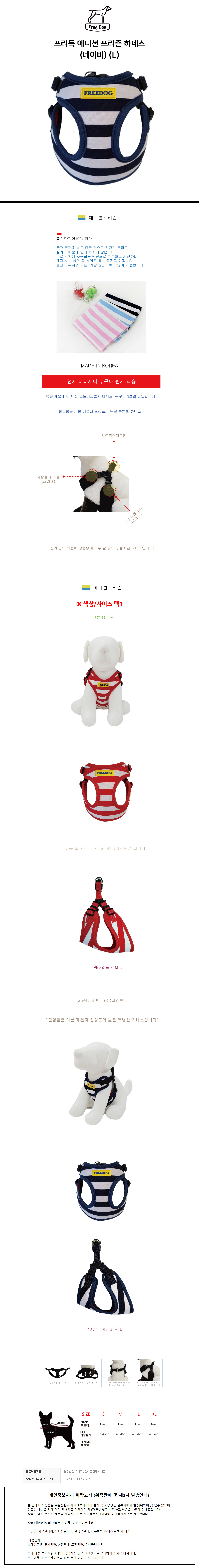 프리독 에디션 프리즌 강아지 하네스 네이비 L