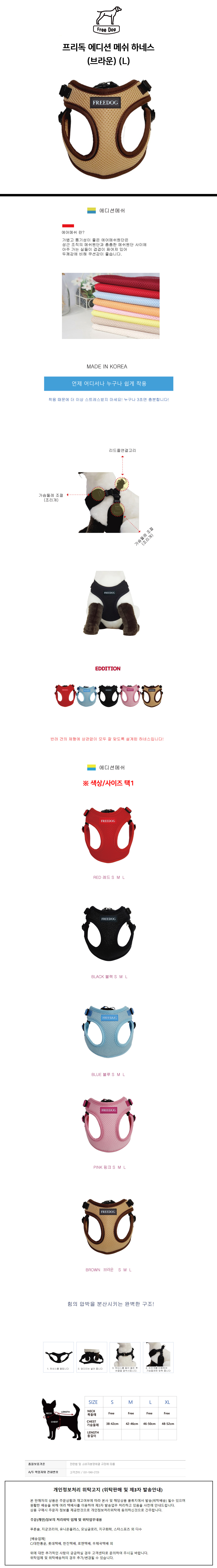 프리독 에디션 강아지 메쉬 하네스 브라운 L