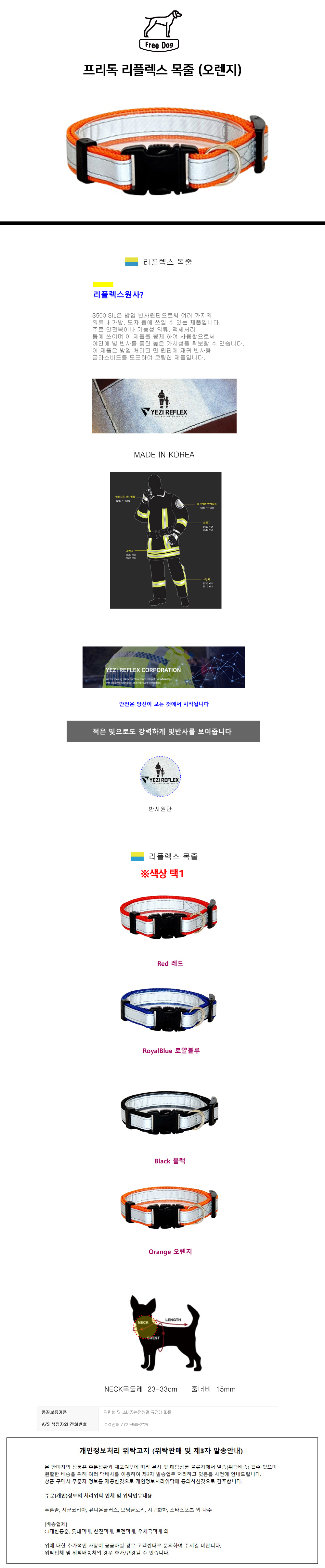 프리독 리플렉스 강아지 목줄 오렌지