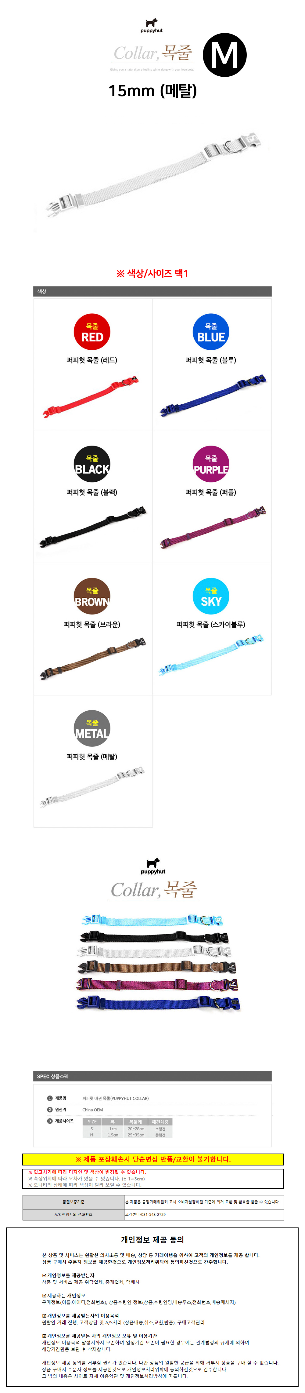 퍼피헛 강아지 목줄 15mm (메탈) (M)