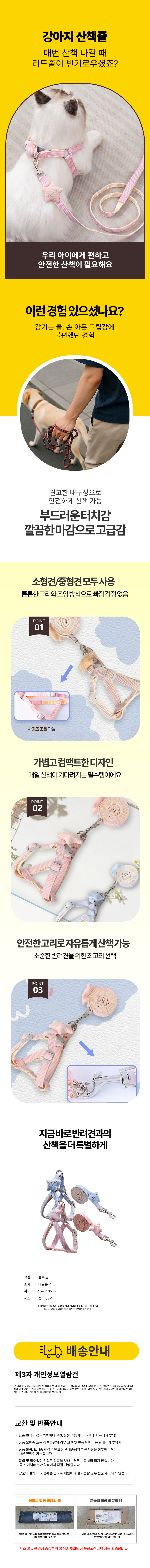 강아지 산책줄 목줄 리드줄 안전한 튼튼한 블루 핑크