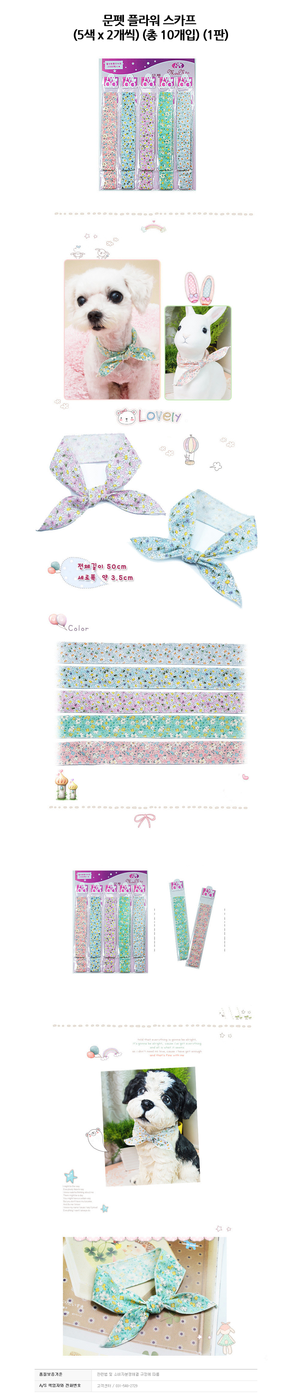 문펫 플라워 스카프 5색 x 2개씩 총 10개입 1판