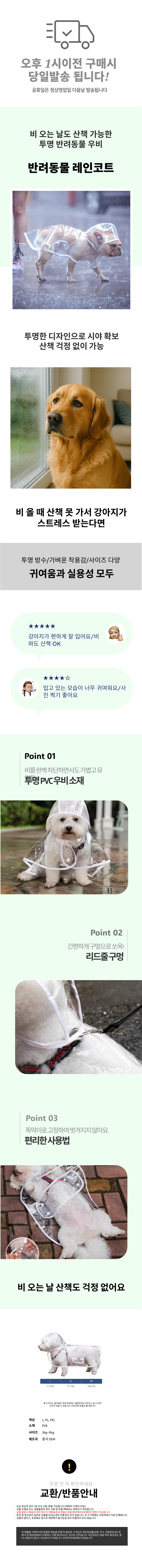 우비 애견우의 반려동물 레인코트 투명 소형견 방수
