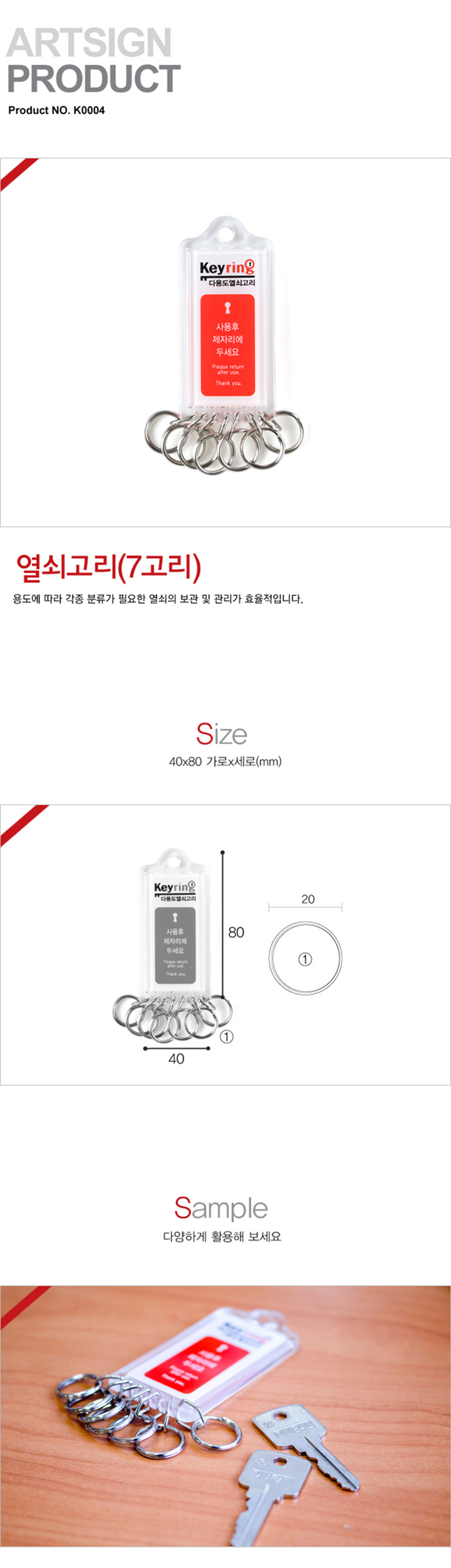 | 품명 및 모델명 | 다용도열쇠고리7구(K0004 9813 40x80mm 아트사인) |