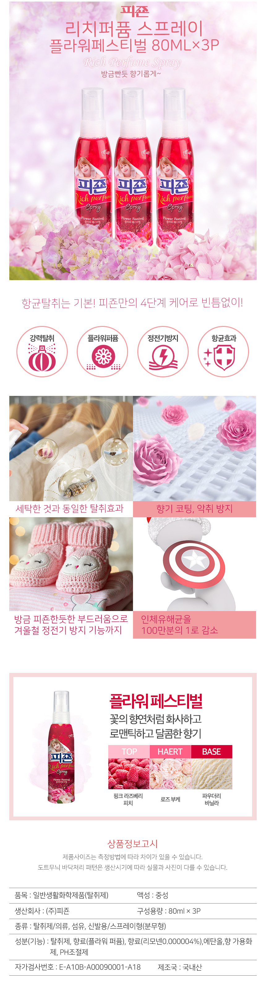 피죤 리치퍼퓸 스프레이 플라워페스티벌 80ml 3P