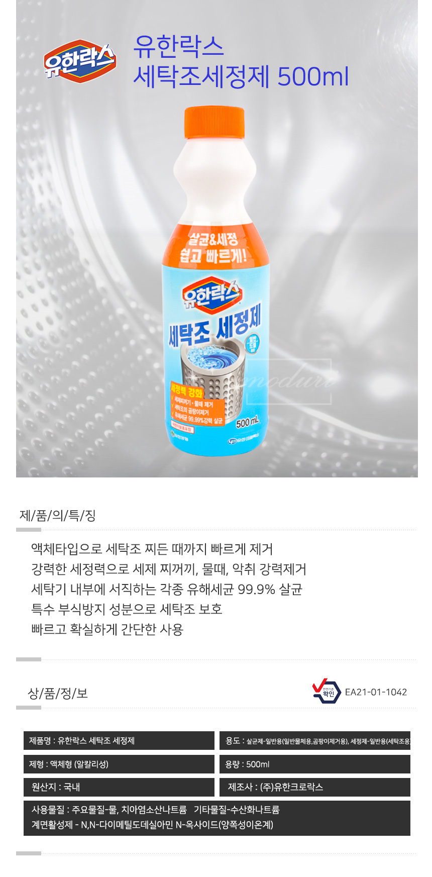 유한락스 세탁조세정제 액체형 500ml